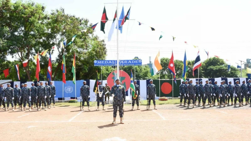 দক্ষিণ সুদানের জুবা ও মালাকালে জাতিসংঘ শান্তিরক্ষা মিশনে বাংলাদেশ নৌবাহিনী ফোর্স মেরিন ইউনিটের ১৯৯ সদস্য জাতিসংঘ শান্তিরক্ষা পদকে ভূষিত হয়েছেন। এ উপলক্ষে গতকাল বুধবার দক্ষিণ সুদানের জুবাতে ব্যানএফএমইউ-১০ কন্টিনজেন্টের মেডেল প্যারেড অনুষ্ঠিত হয়।
